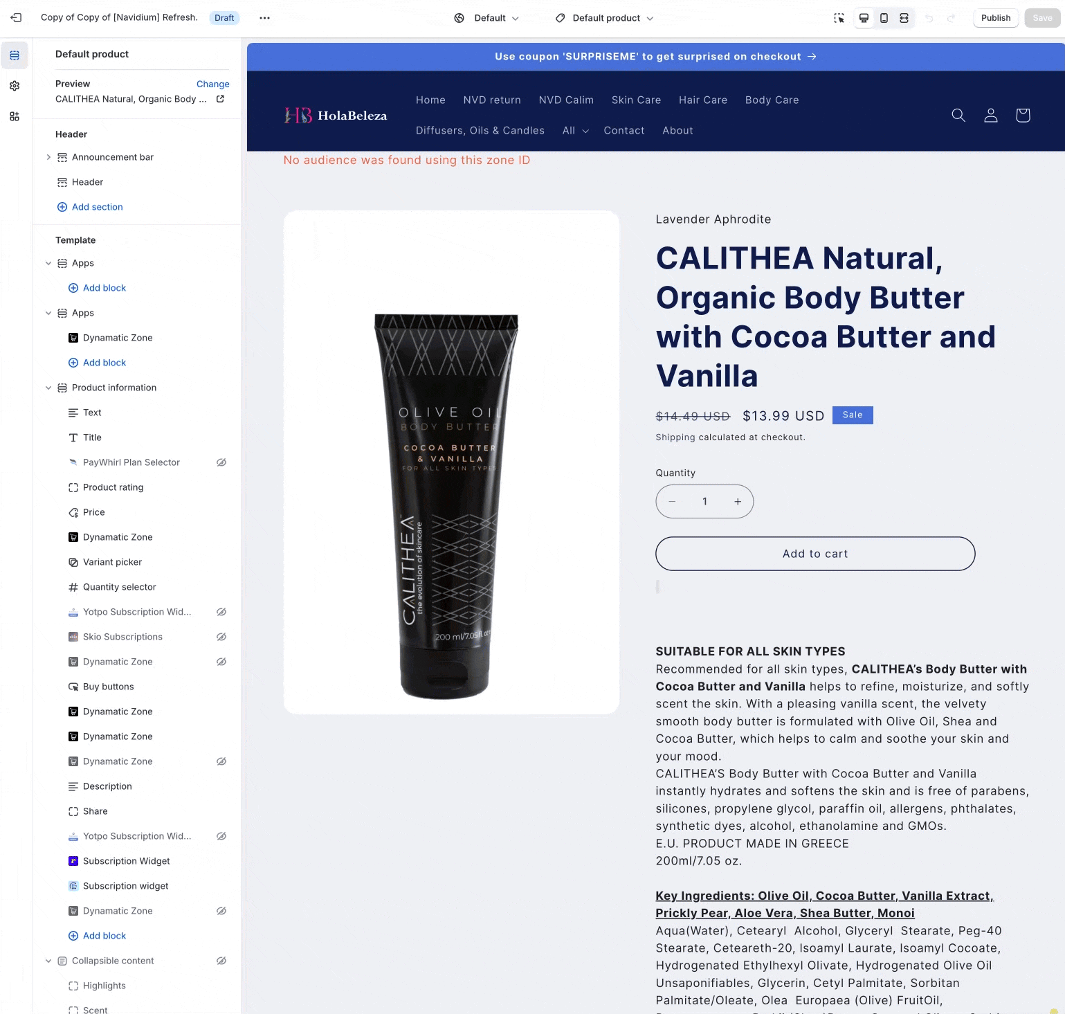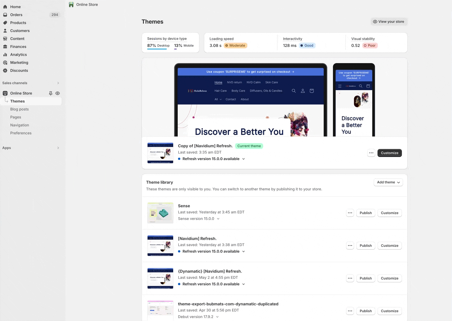That's it! You have now duplicated the live theme, and as long as you make any changes in this theme only, nothing related to Dynamatic will show on your live theme at all.
