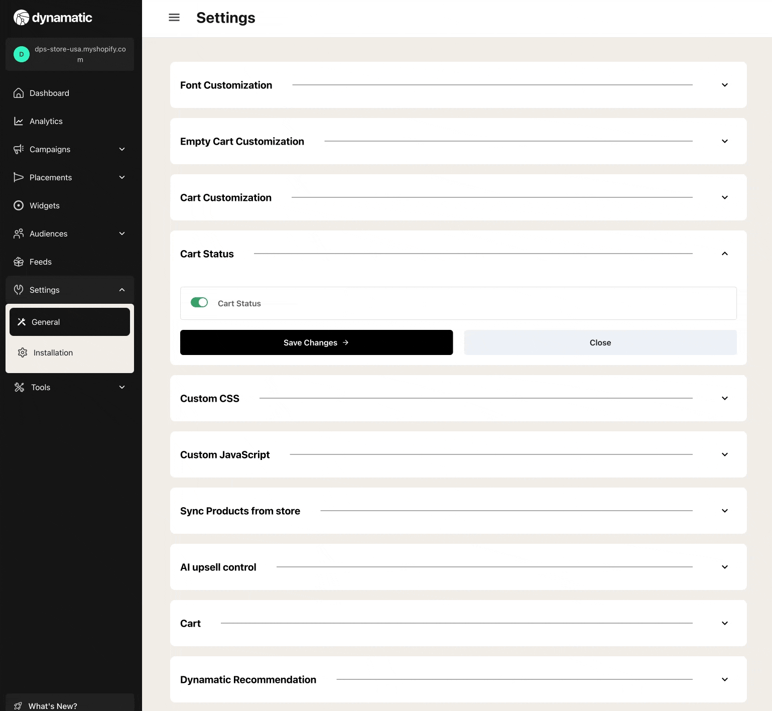 This will now enable the Dynamatic cart on your store, as well as the script for tracking site usage and behaviors to use in Audiences!