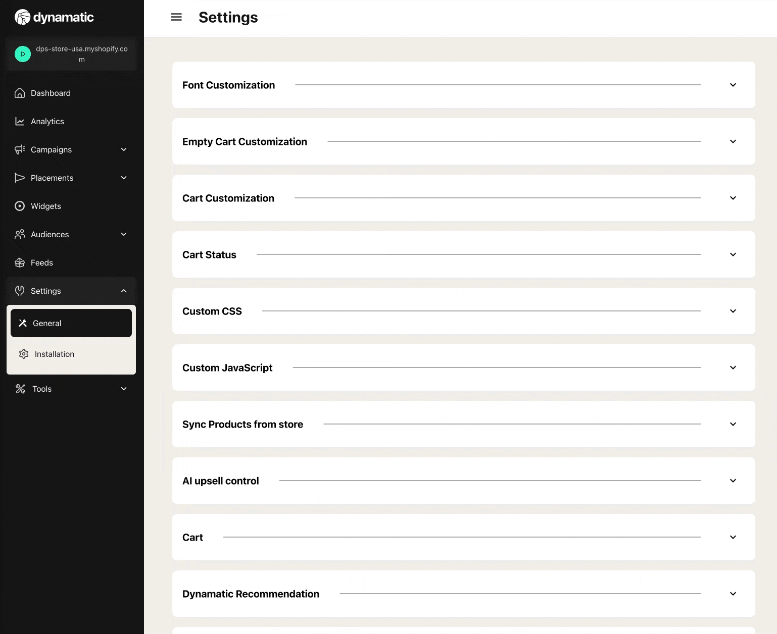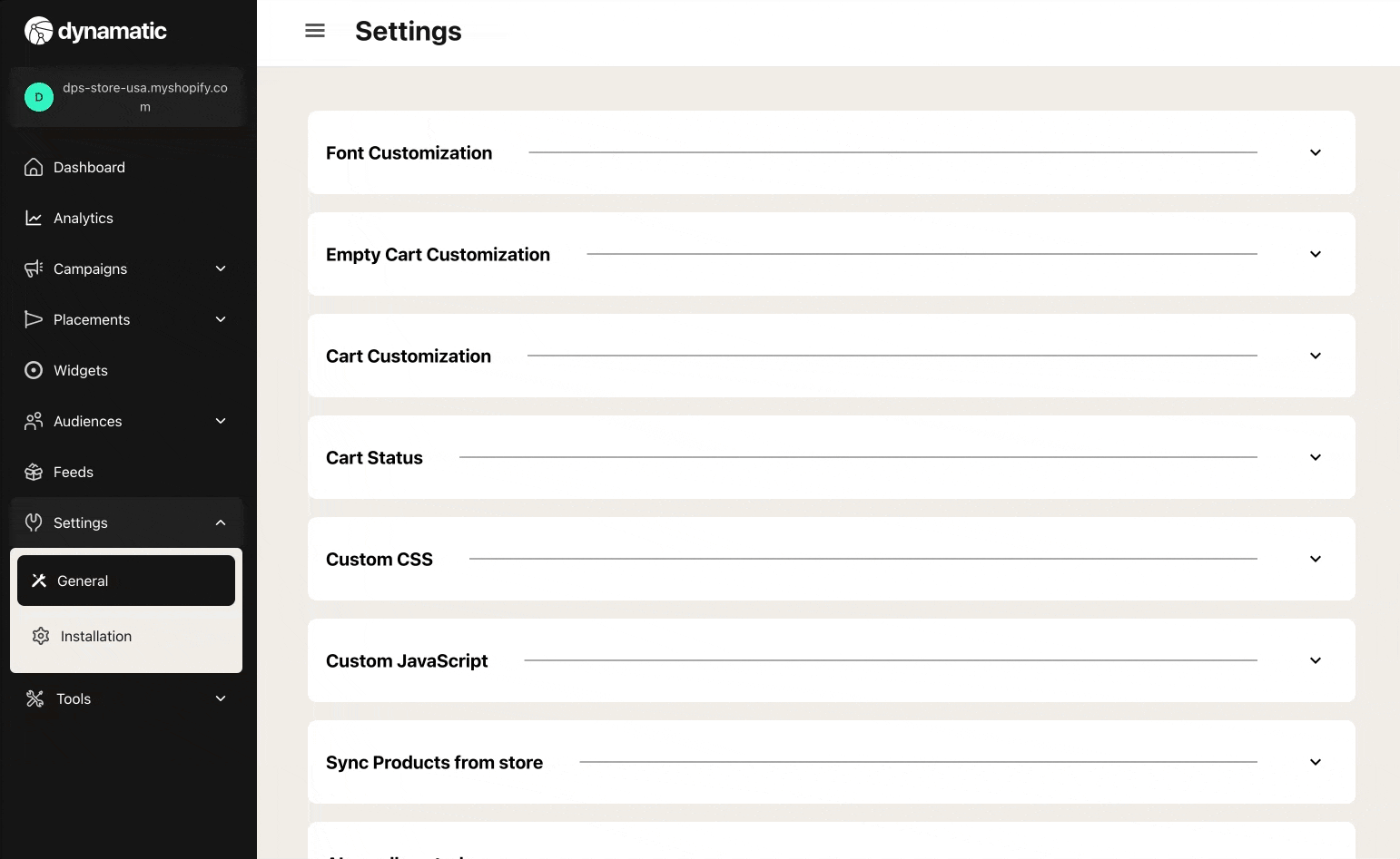 For Dynamatic App to be able to allow you to create audiences, feeds, and widgets based on Products, we need to sync over your products and collections to our app! Head over to the General settings and look for the "Sync Products from Store" section and press the start sync button!