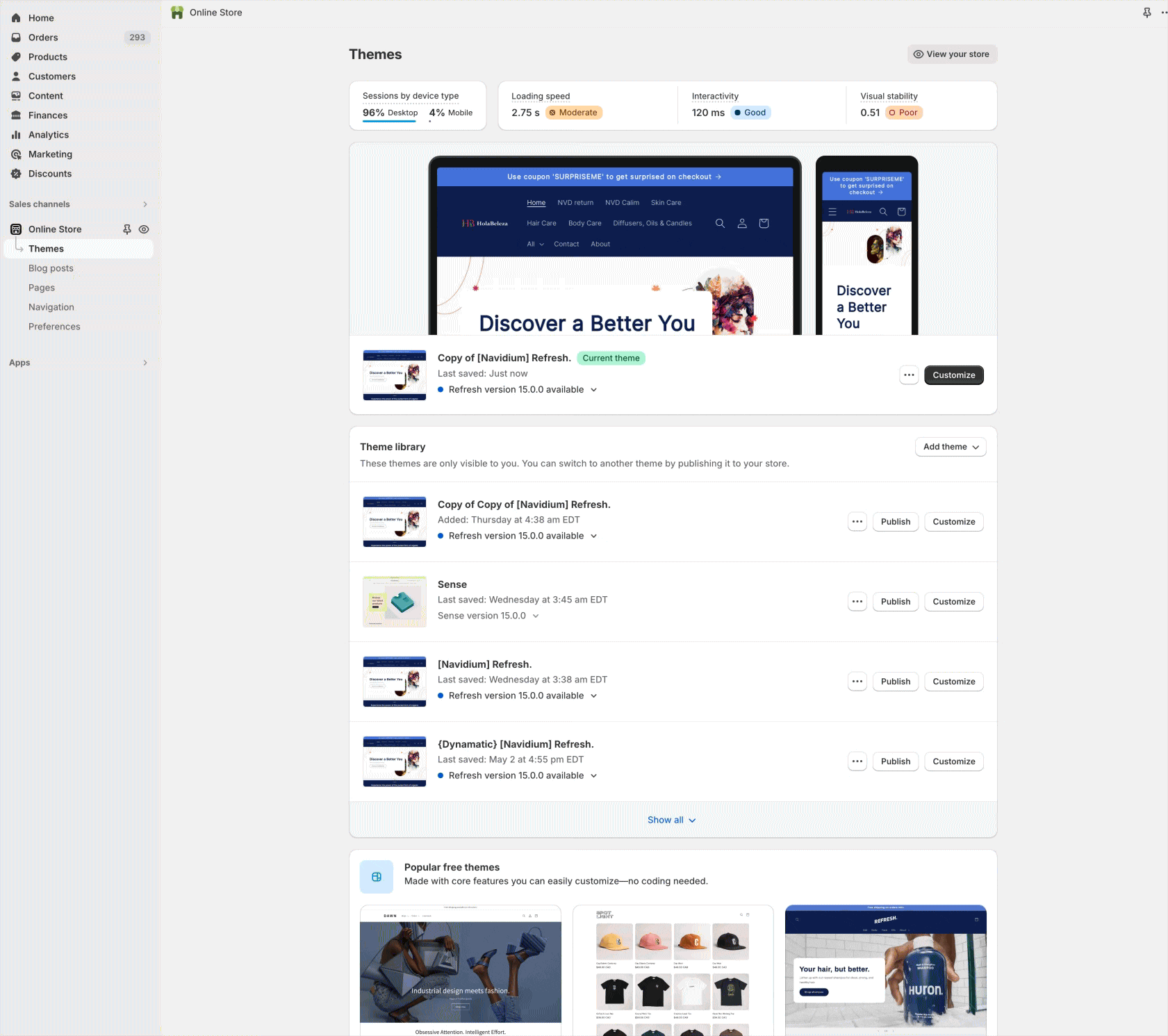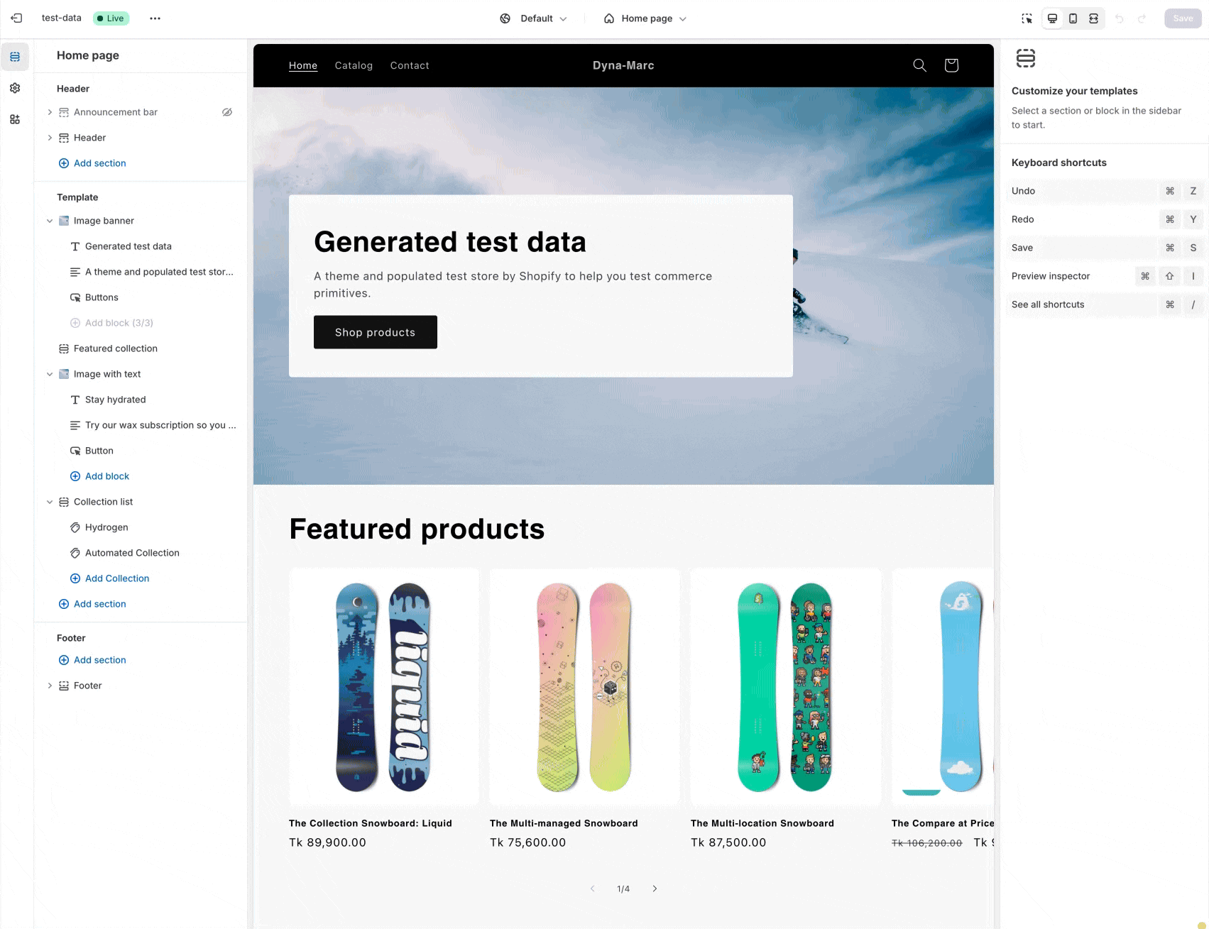 Head to: Sales Channels > Online Store > Themes in your shopify admin, and click customize on the theme you plan to add the Dynamatic placement to.
