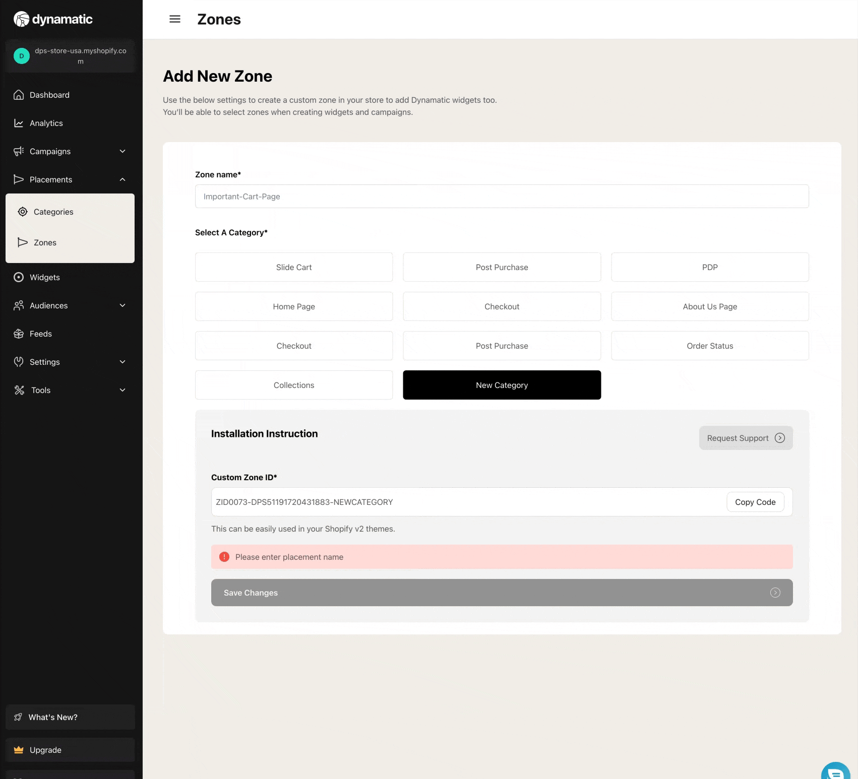 Congrats! You've now officially created a Zone. This placement can now be used with any Dynamatic Campaign and Experience and display any widget you like that is applicable to this page.