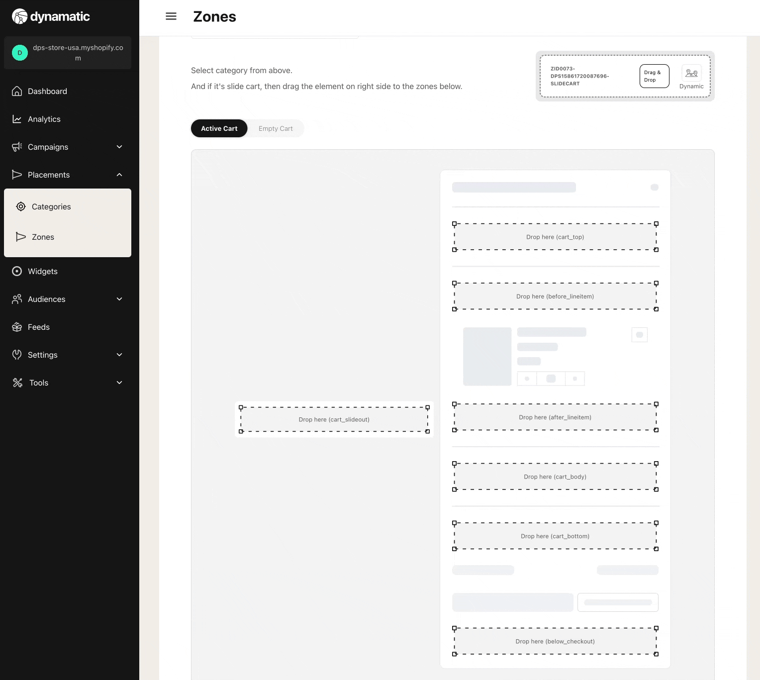 The Dynamatic Cart supports multiple placement options inside the cart for widgets to be placed in when you create a zone.