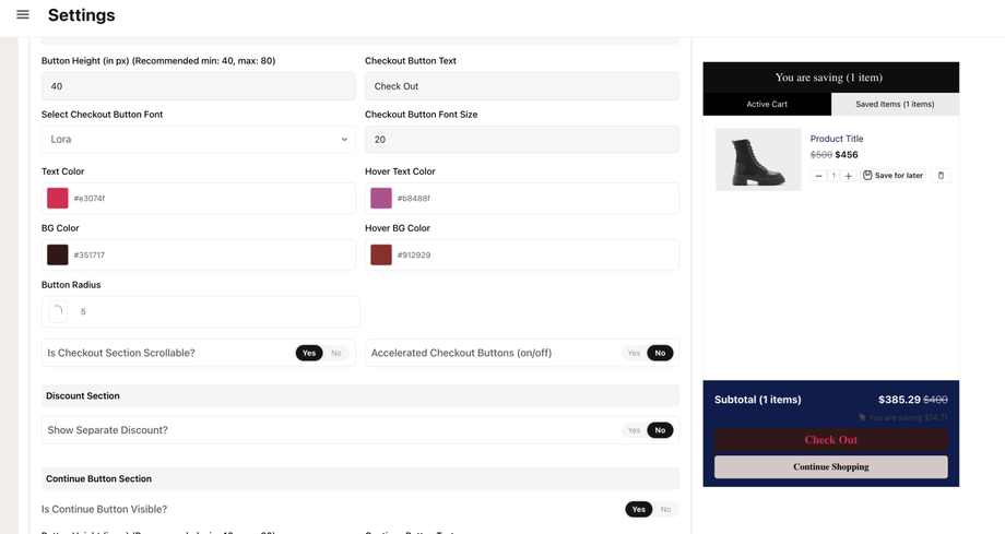 Cart Styling Settings