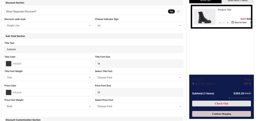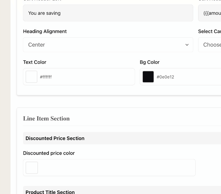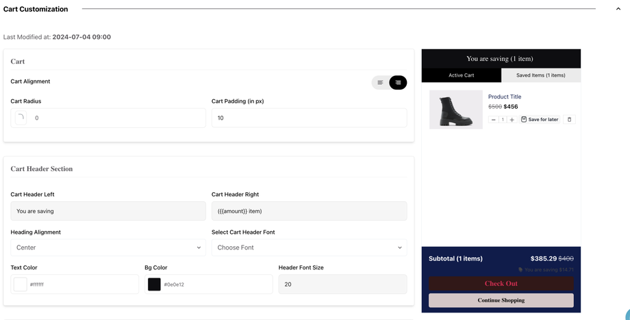 Heading Alignment: Controls whether the header of the cart is left, center, or right leaning.