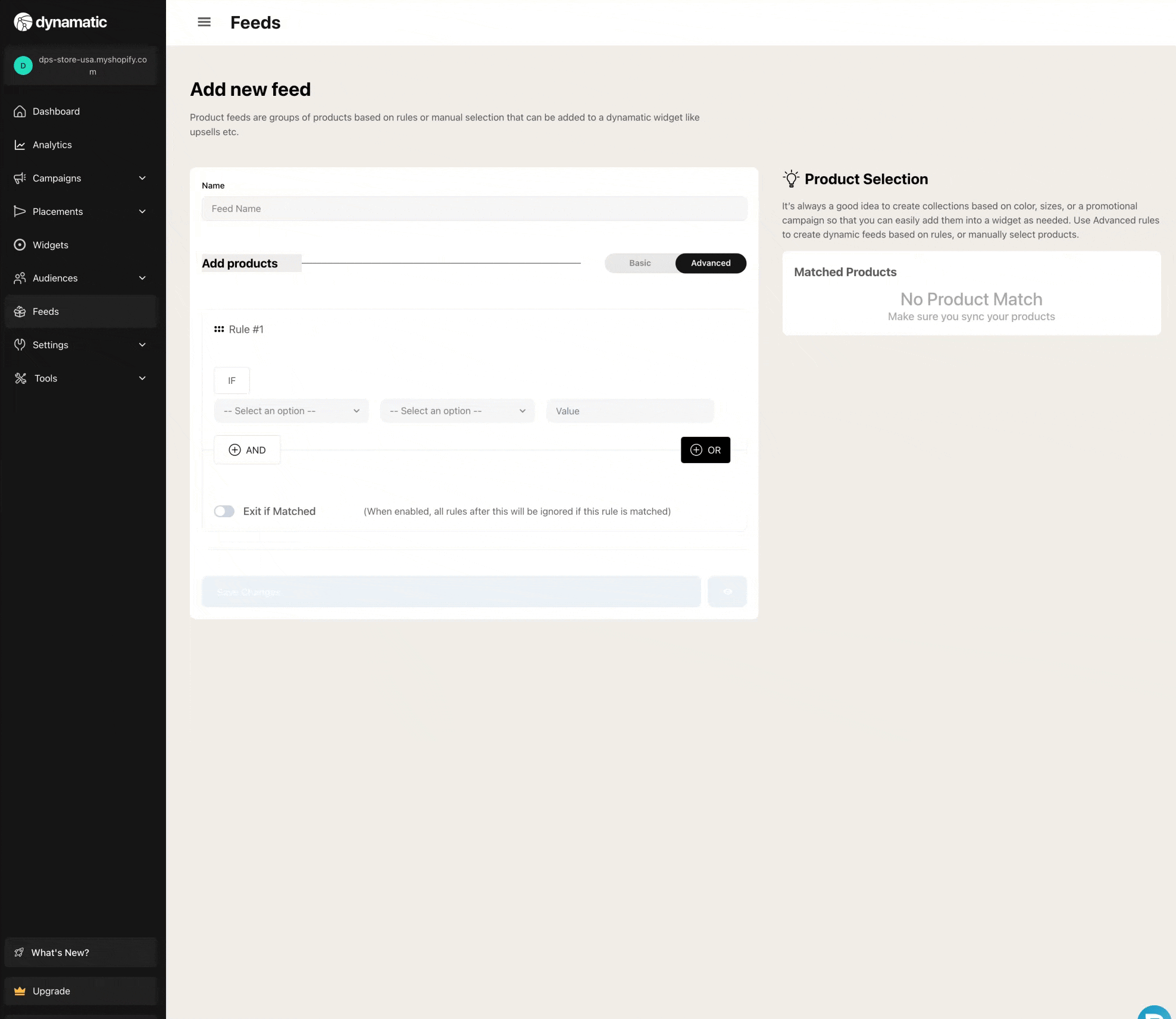 Dynamatic App offers the ability to create groups of products based on Rules. These groups are called "feeds" and they can be leveraged to control what items display in a widget, what items trigger a widget, or even to exclude specific items from a widget or offer.