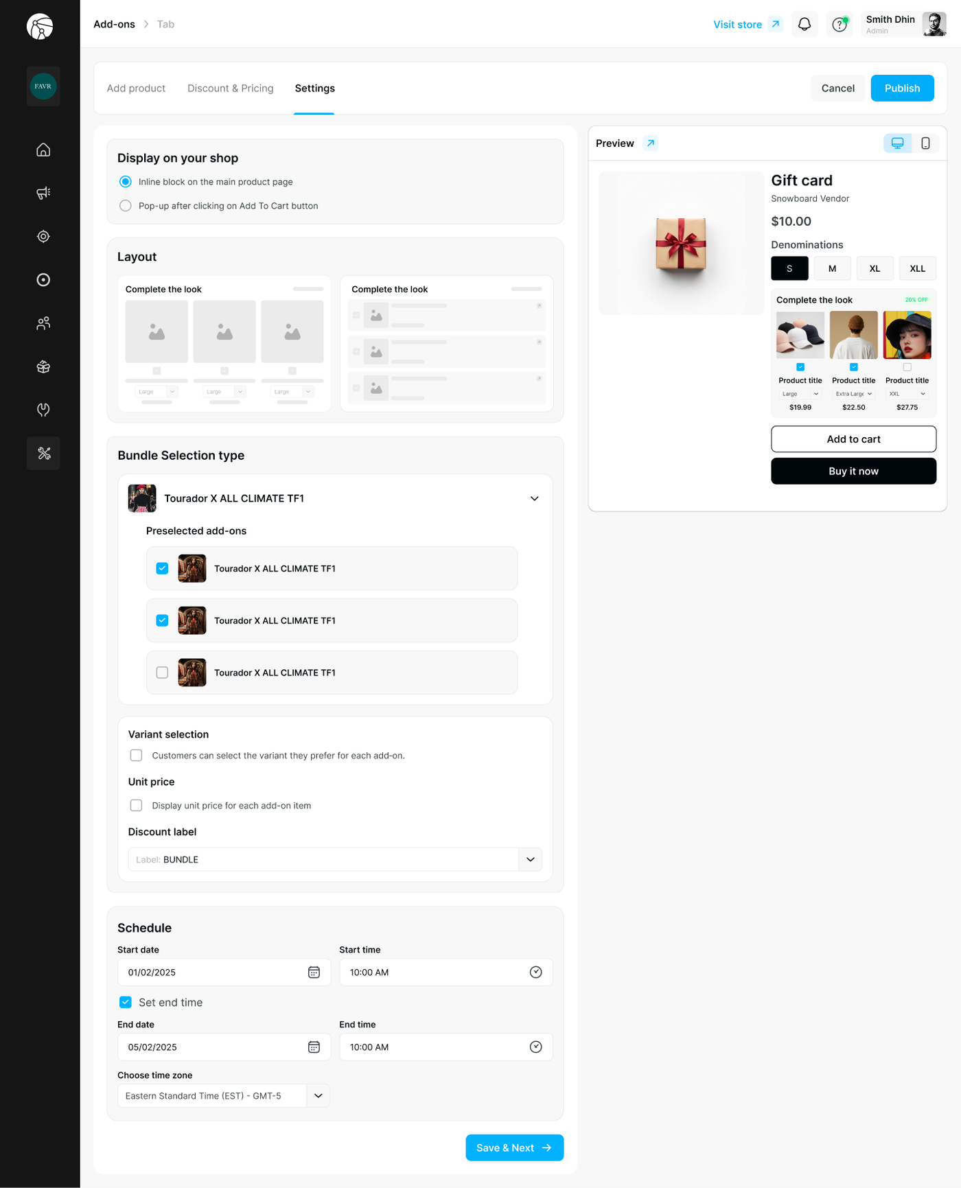 The Add-ons Bundle is your go-to tool for turning a single-item purchase into a higher-value order — without any friction. By surfacing complementary products directly on the product page, it creates a natural "Complete the look" or "You might also need" moment right where buying intent is highest.