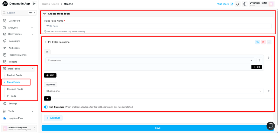 The Rules Feeds section in the Dynamatic App is a powerful feature that allows you to define complex, conditional logic for your campaigns and product displays. By combining various conditions, you can create highly customized rules that dictate what content or products a customer sees.