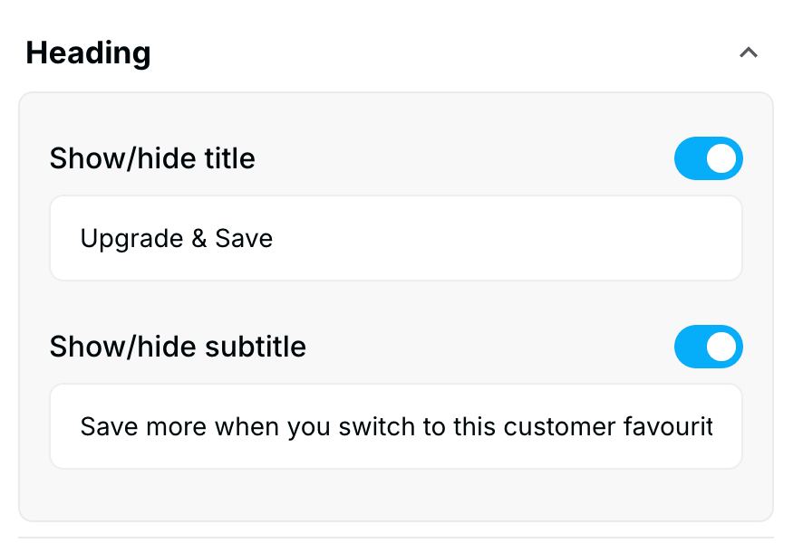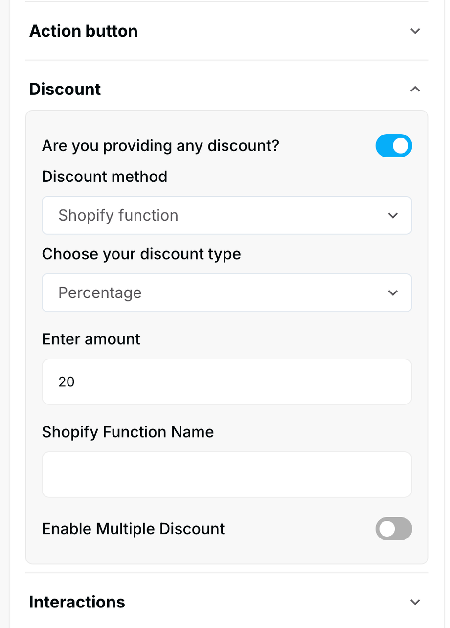 Discount | Applies savings to the upsell item. | Configure the discount offered on the product(s) presented in the interstitial. |