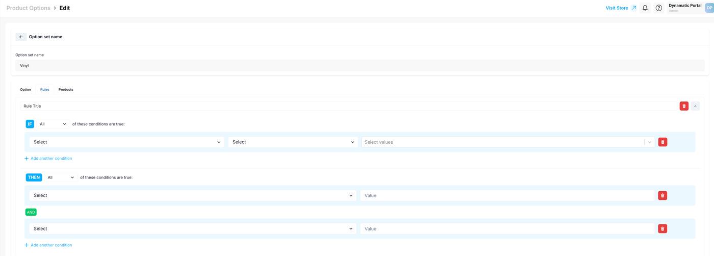 The Rules tab allows you to create "If/Then" scenarios to make your product pages dynamic.