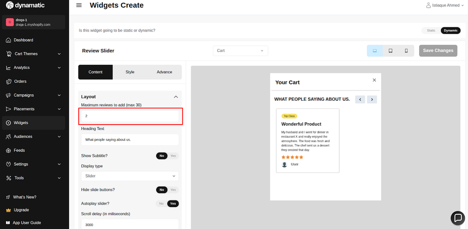 Maximum Reviews | Sets the hard limit for the number of reviews displayed in the slider. | The maximum limit is 30 reviews. |